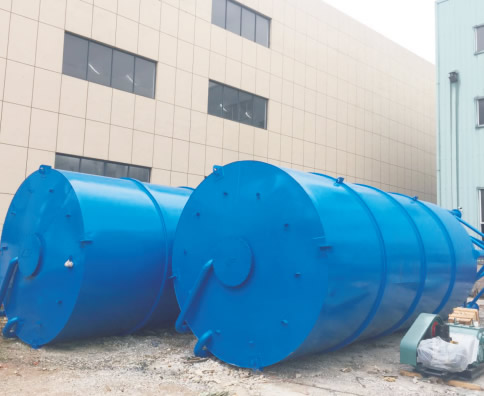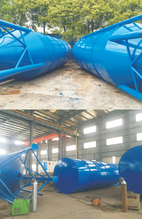 立式水泥筒倉市目前市場上最常用的粉料儲罐,使用時需要提前澆筑混凝土基礎,排放鋼制預埋件,固定支腿,用鋼絲繩等分拉住桶頂。 容量 | 底腳尺寸 | 外形尺寸 | 板厚 | 重量 | 50噸-75噸 | 2050*2050 | 直徑2800*10000 | 5mm | 4.5-5.5噸 |
